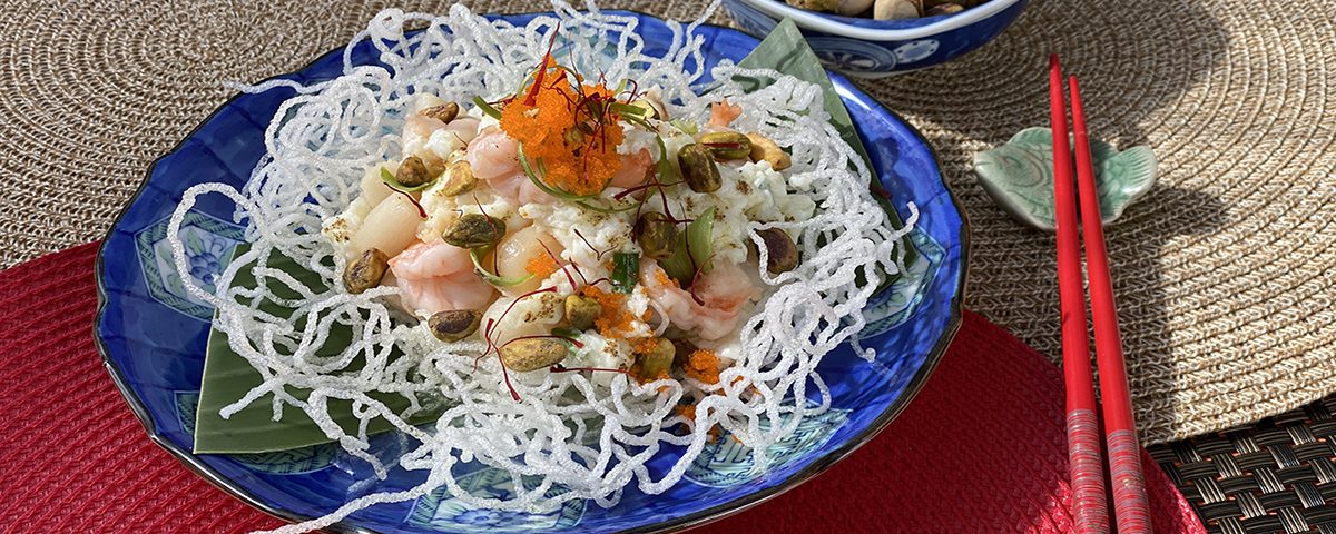 Place a medium non-stick frying pan over medium-high heat until hot. Add cooking oil, swirling to coat sides. Add egg whites, swirling pan to make a fluffy omelet. Add a pinch of salt and pepper. Cook for 1 – 2 minutes. Be careful not to overcook. Lift out of pan, drain and set aside.